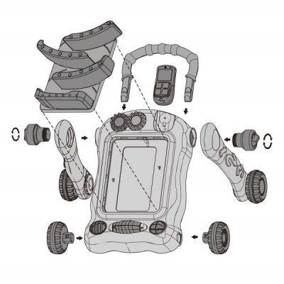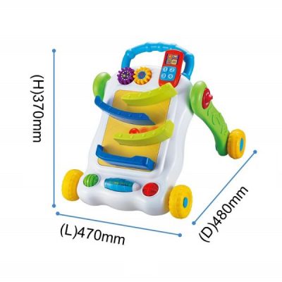 - Igračka 2U1 koja pomaže detetu pri prohodavanju, napravljena od plastike i koja je kao sto za igru.