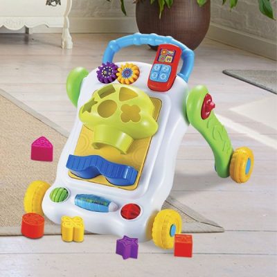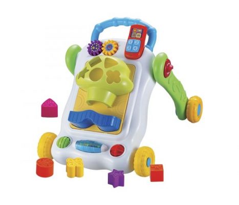 - Igračka 2U1 koja pomaže detetu pri prohodavanju, napravljena od plastike i koja je kao sto za igru.