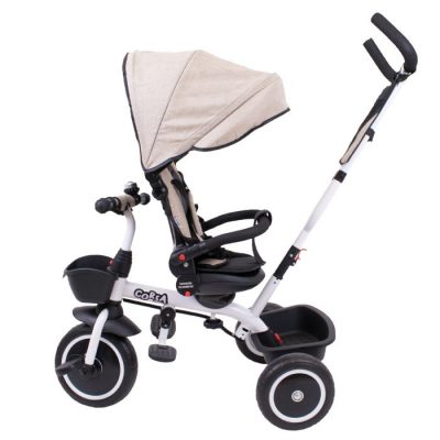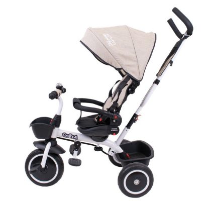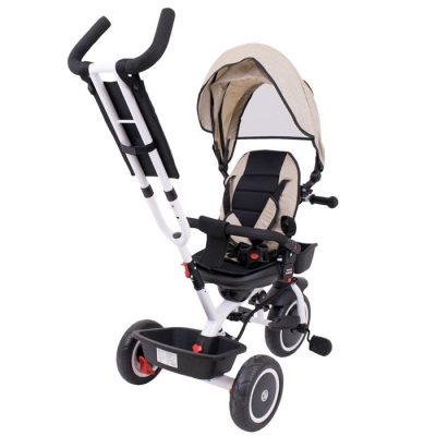 -Teleskop za guranje tricikla, sa ergonomskim ručicama, se može podesiti u dve visine.