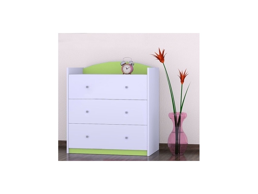 Prednje strane komode obložene su živopisnim nalepnicama koje su izrađene od ekoloških boja, potpuno bezbednih po zdravlje deteta. Komodu je predvidjeno samostalno montirati, prema priloženom uputstvu.