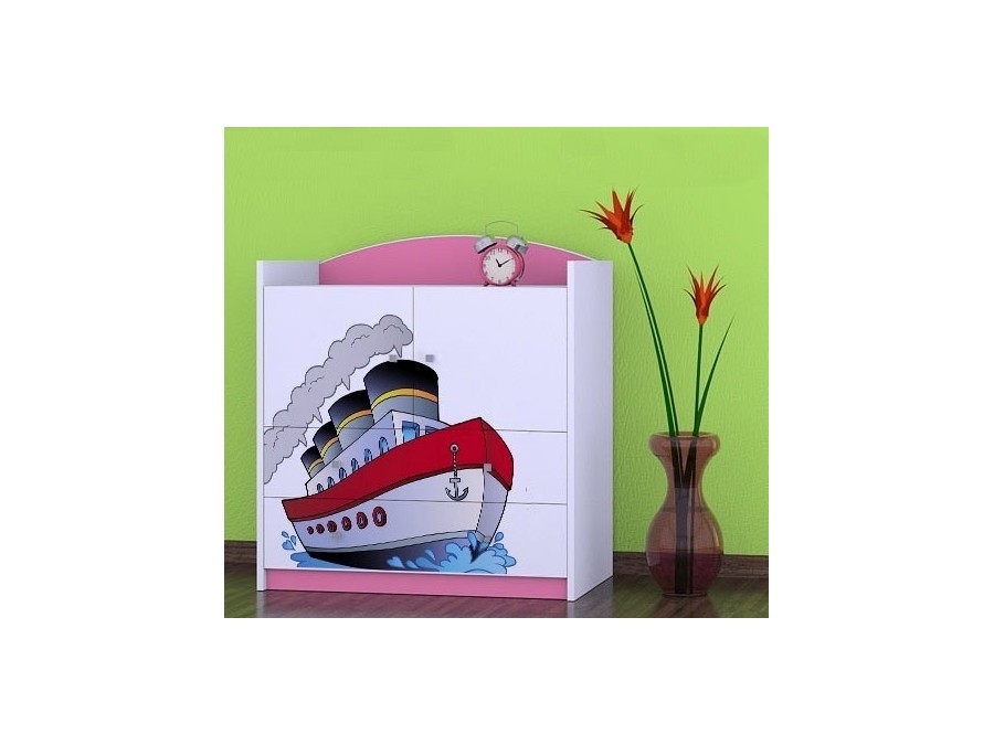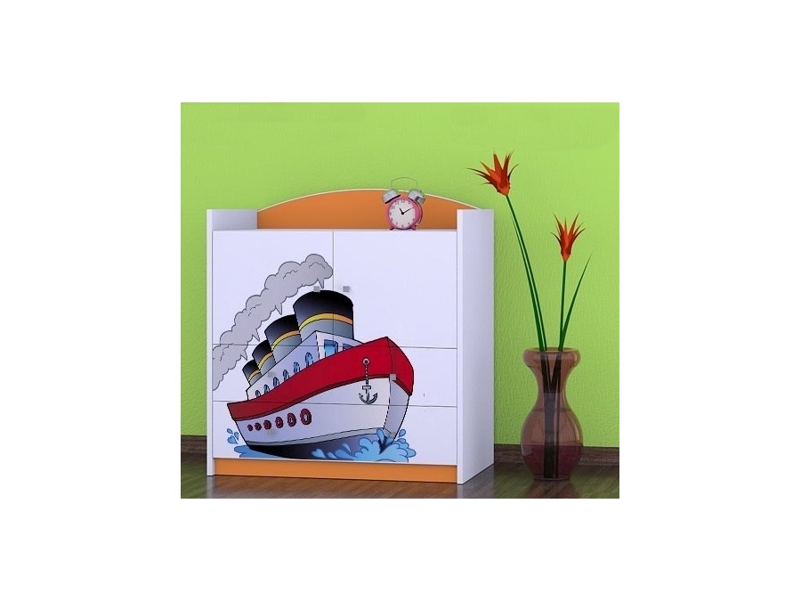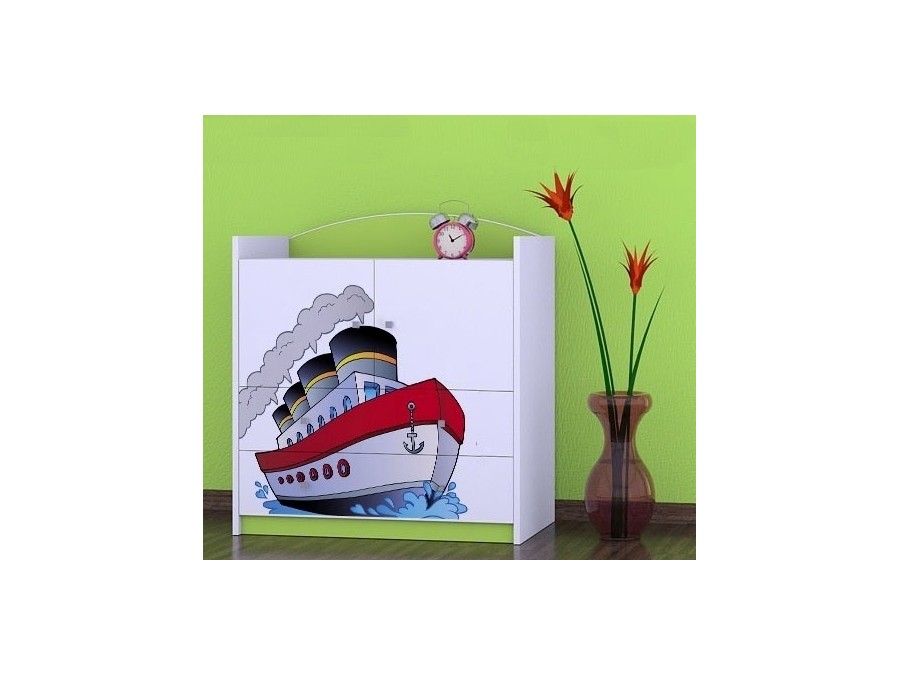 Prednje strane komode obložene su živopisnim nalepnicama koje su izrađene od ekoloških boja, potpuno bezbednih po zdravlje deteta. Komodu je predvidjeno samostalno montirati, prema priloženom uputstvu.