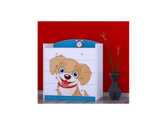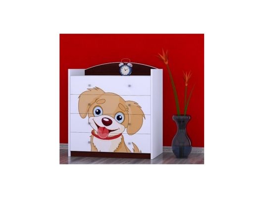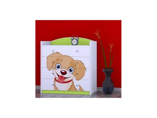 Prednje strane komode obložene su živopisnim nalepnicama koje su izrađene od ekoloških boja, potpuno bezbednih po zdravlje deteta. Komodu je predvidjeno samostalno montirati, prema priloženom uputstvu.