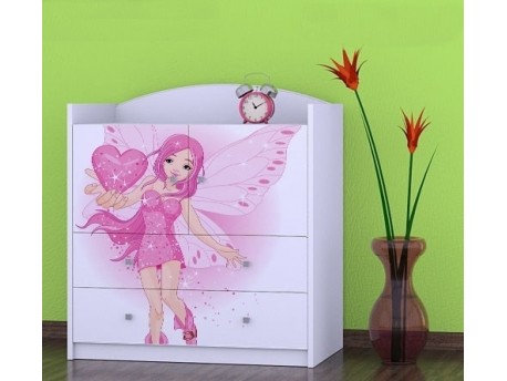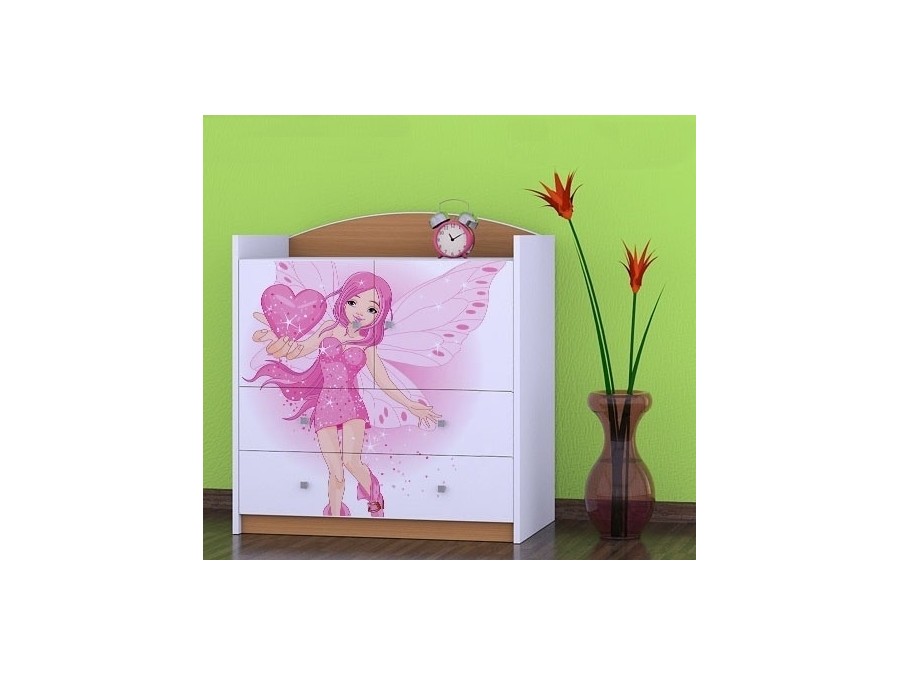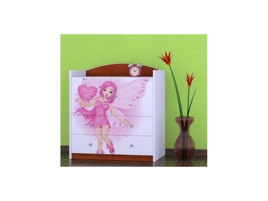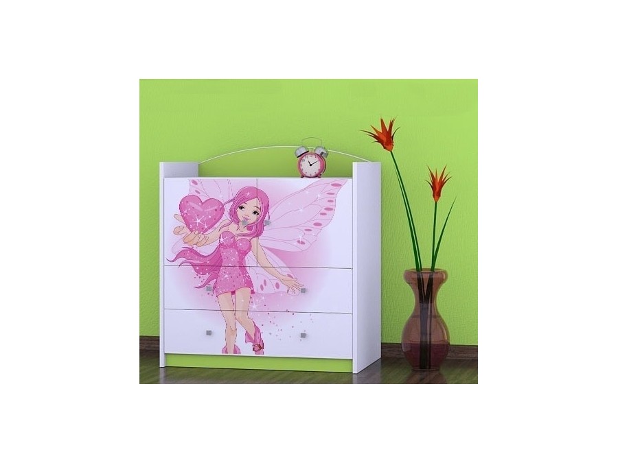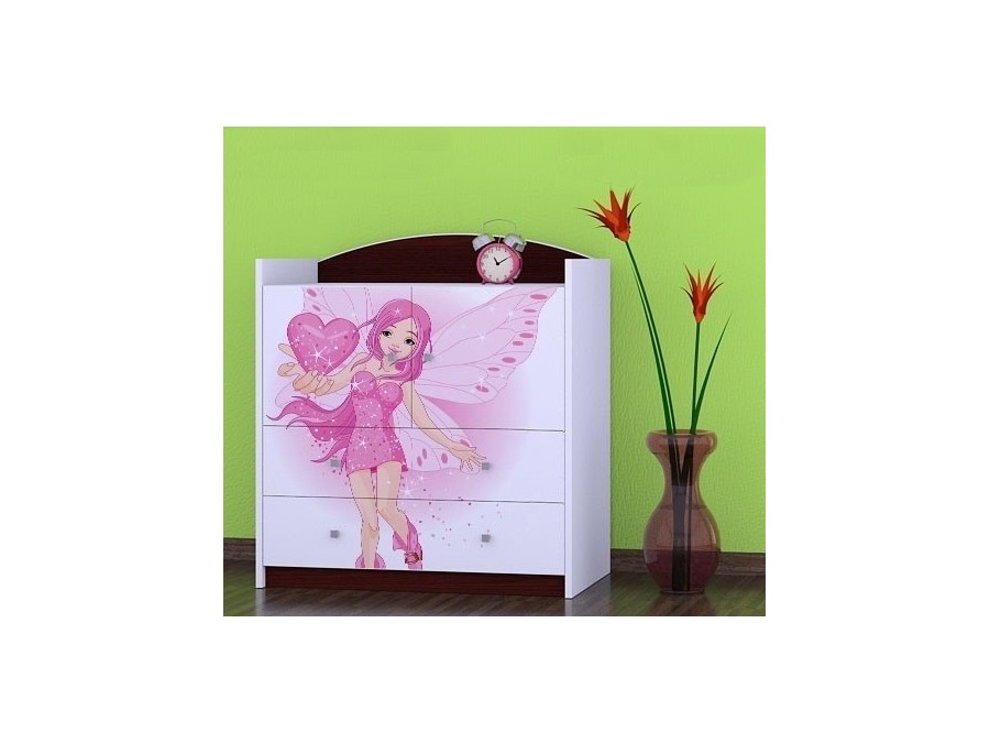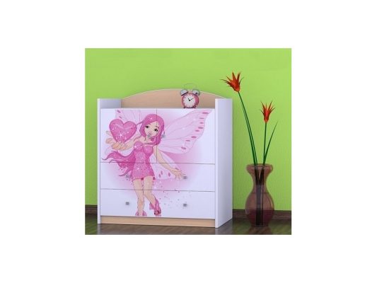 Prednje strane komode obložene su živopisnim nalepnicama koje su izrađene od ekoloških boja, potpuno bezbednih po zdravlje deteta. Komodu je predvidjeno samostalno montirati, prema priloženom uputstvu.