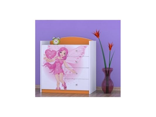 Prednje strane komode obložene su živopisnim nalepnicama koje su izrađene od ekoloških boja, potpuno bezbednih po zdravlje deteta. Komodu je predvidjeno samostalno montirati, prema priloženom uputstvu.