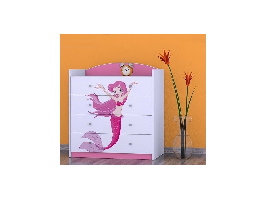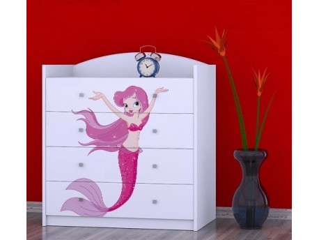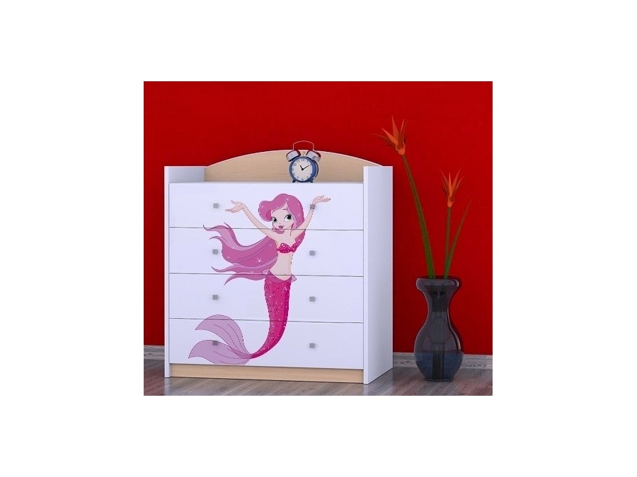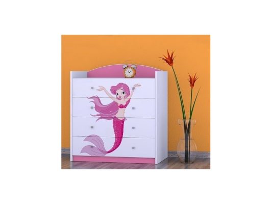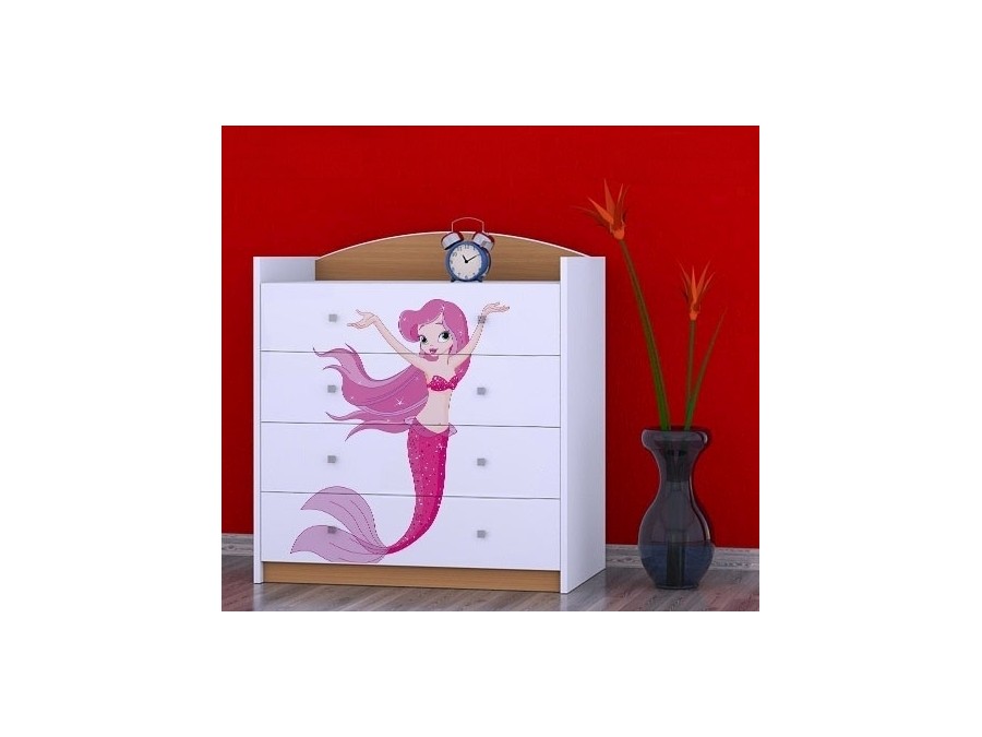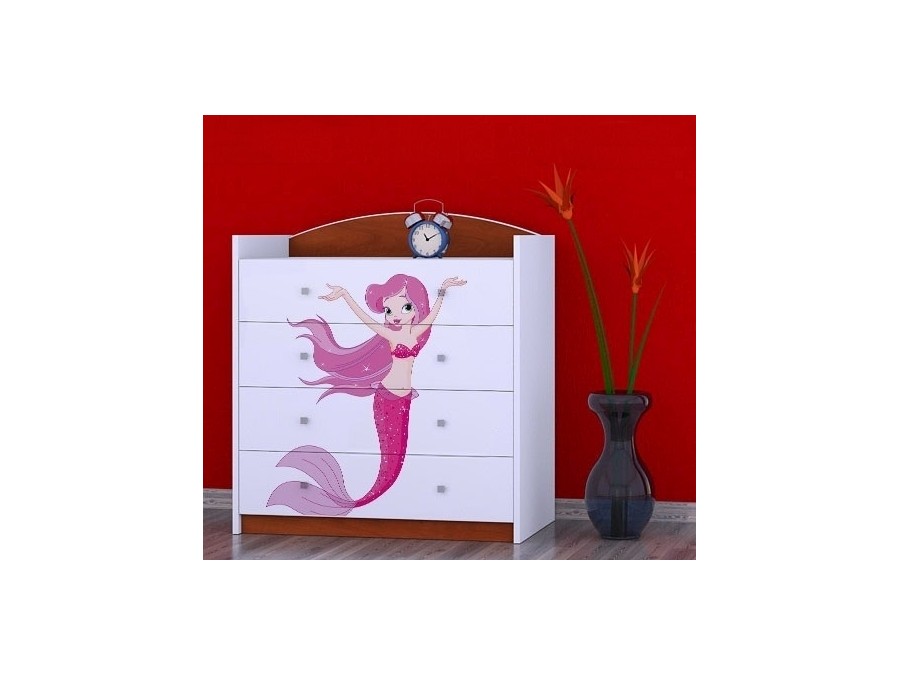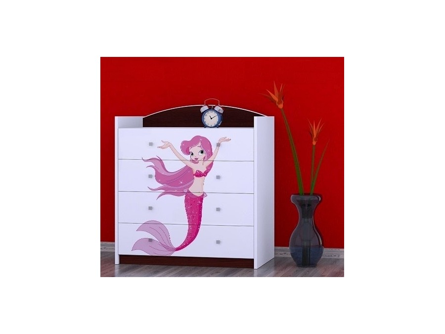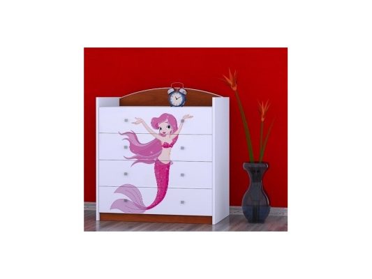 Prednje strane komode obložene su živopisnim nalepnicama koje su izrađene od ekoloških boja, potpuno bezbednih po zdravlje deteta. Komodu je predvidjeno samostalno montirati, prema priloženom uputstvu.