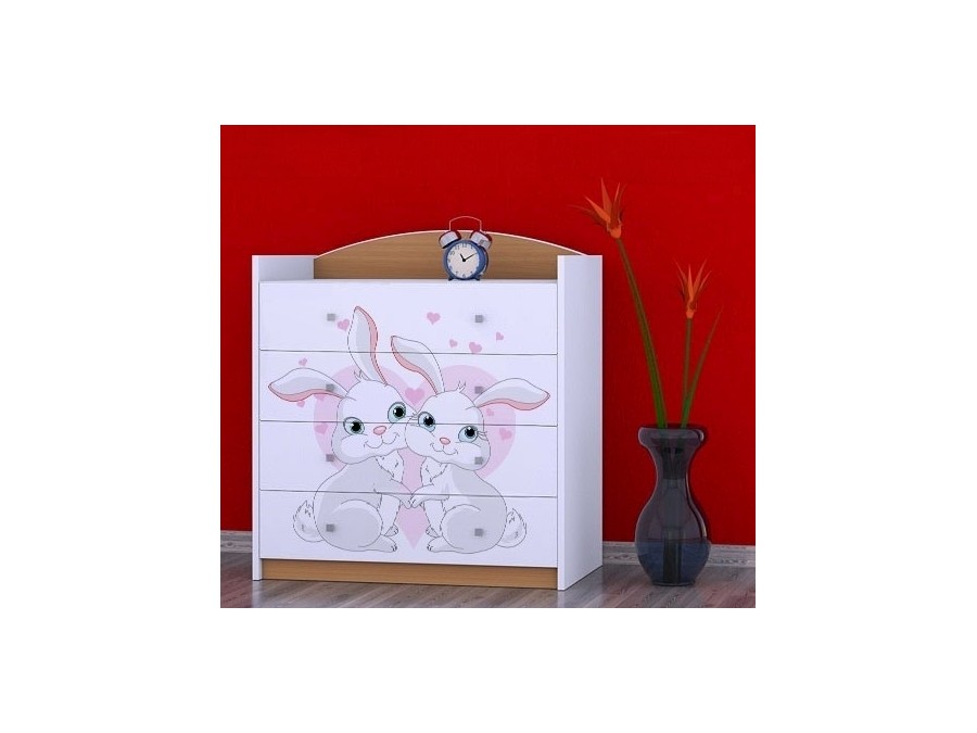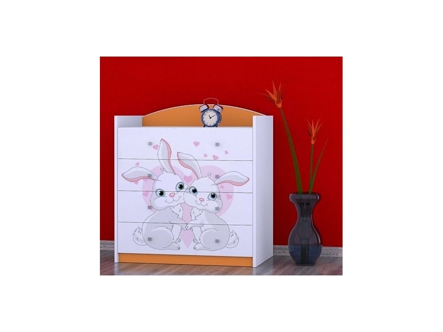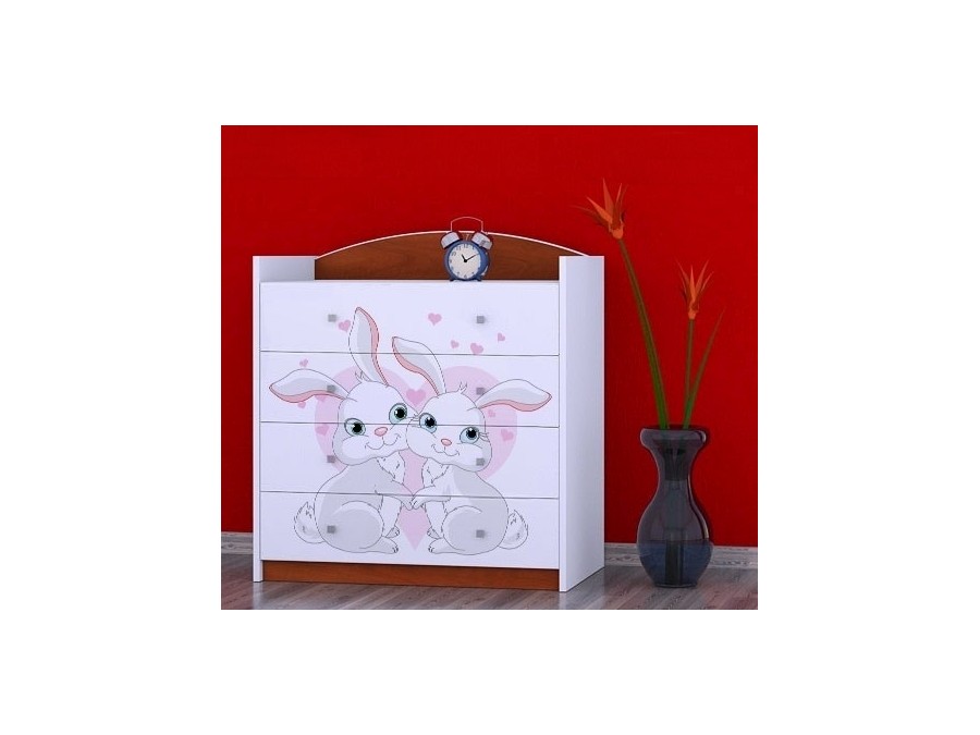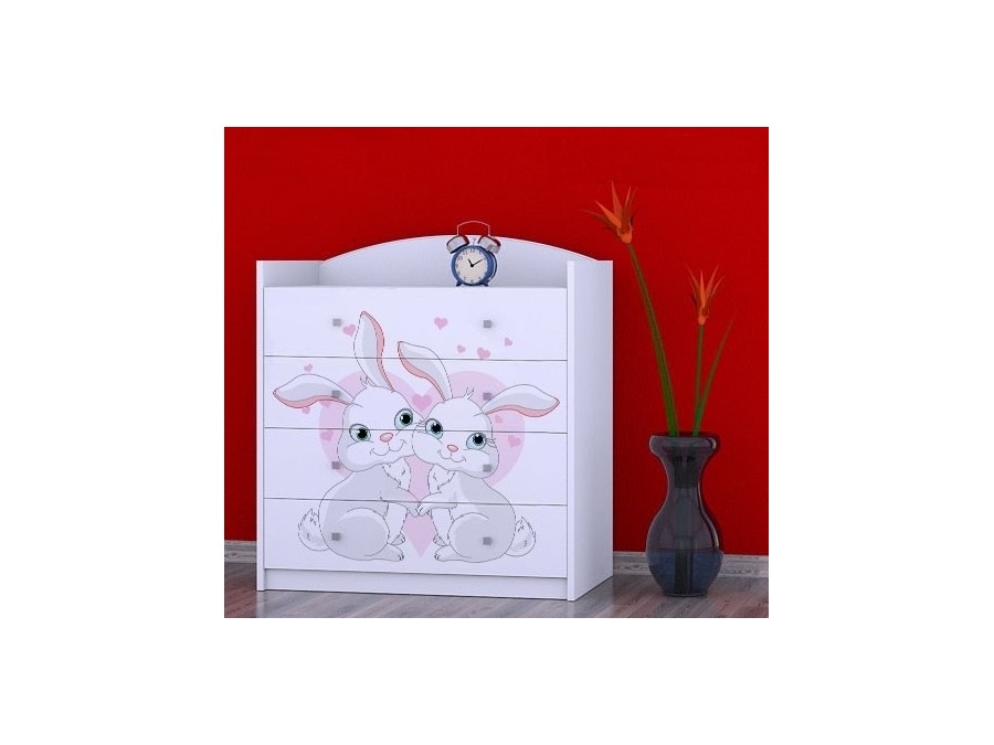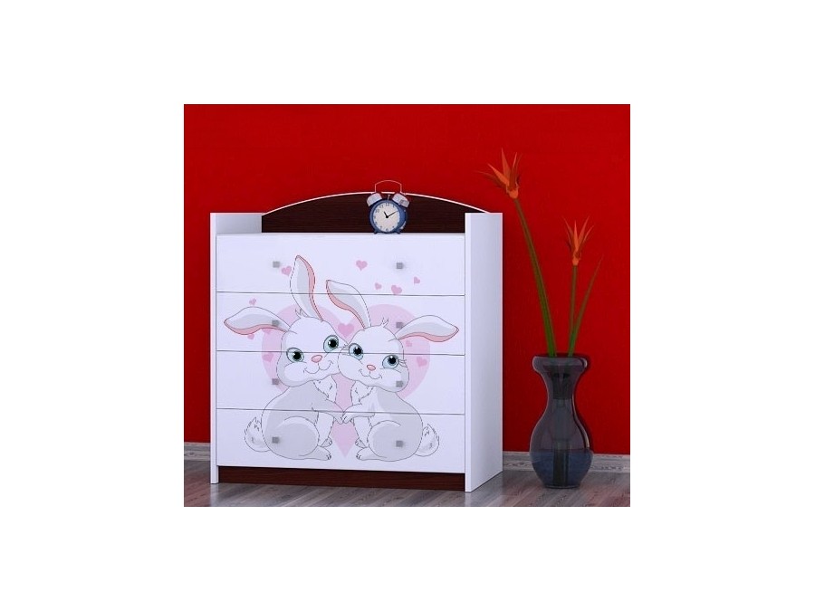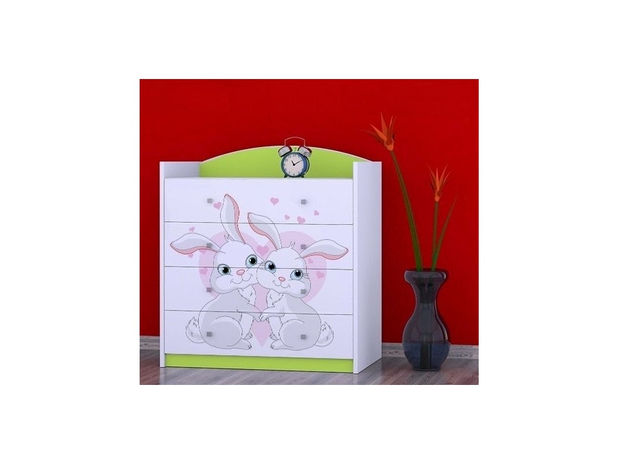Prednje strane komode obložene su živopisnim nalepnicama koje su izrađene od ekoloških boja, potpuno bezbednih po zdravlje deteta. Komodu je predvidjeno samostalno montirati, prema priloženom uputstvu.