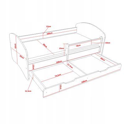 -Okvir je izrađen od OBS ploče debljine 18 mm, letvice za dušek povezane trakom, zahvaljujući kojoj krevet izdržava opterećenje do 95 kg!