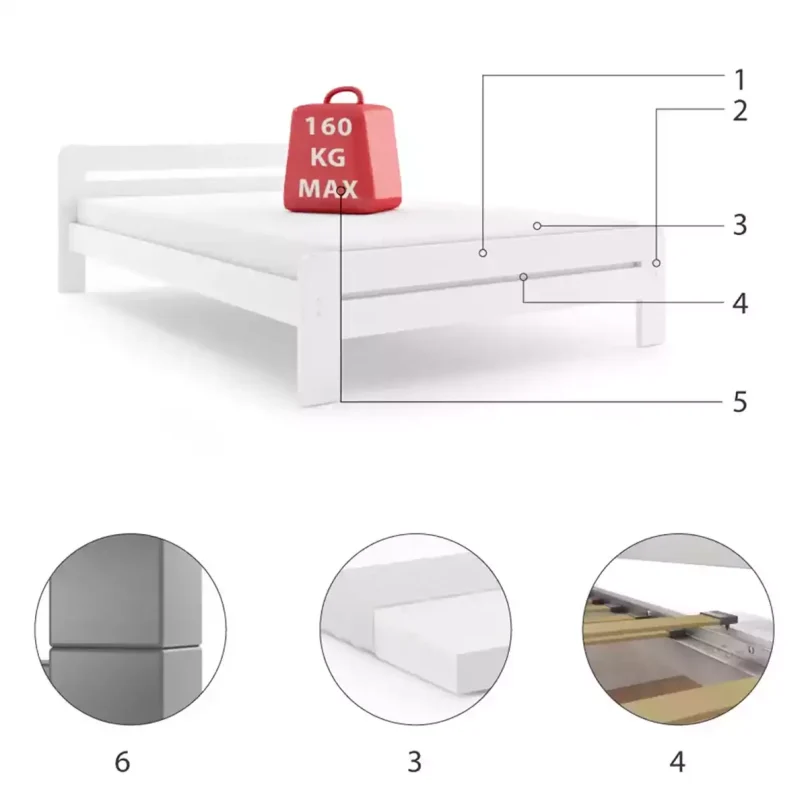 - Ram kreveta – napravljen od borovog drveta, obojen lakom na bazi vode.