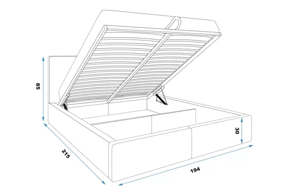 - Kada se okvir podigne, prostor je podeljen pregradom. Zadnji deo pregrade nema panel, dok se u prednjem delu nalazi odeljak za posteljinu.