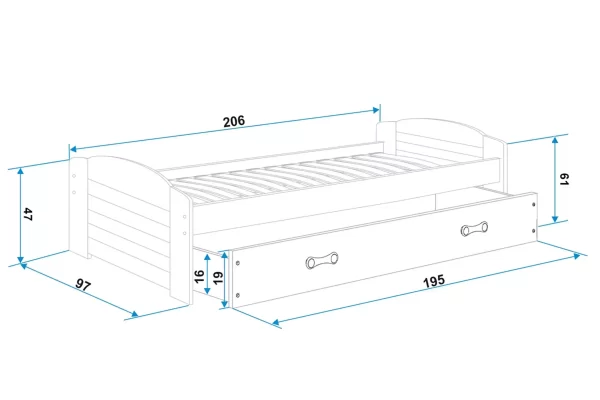 - Okvir kreveta – od borovog drveta, farbanog lakom na bazi vode.