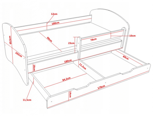 -Krevet je opremljen s vrlo funkcionalnom fiokom na gumenim točkovima.