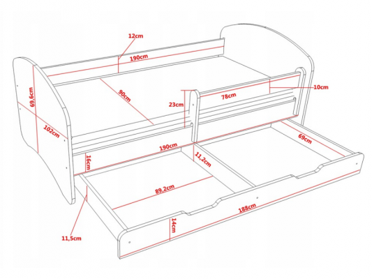 -Krevet je izrađen od visokokvalitetnog presovanog bukovog drveta, svi rubovi su zaobljeni posebnom PVC obradom radi sigurnosti.