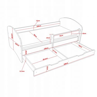 -Krevet je opremljen s vrlo funkcionalnom fiokom na gumenim točkovima.