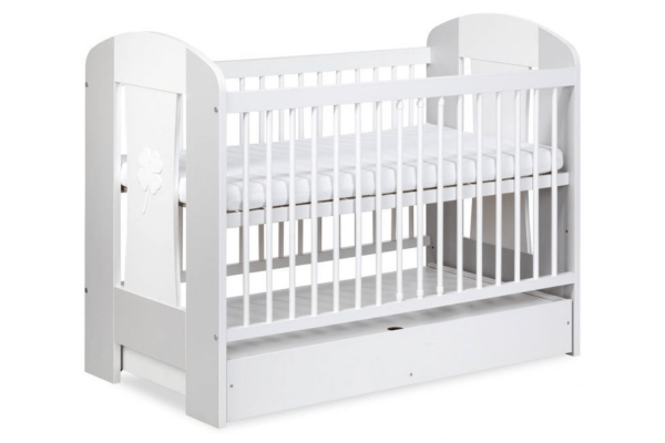 Izrađen od lamelirane ploče sa elementima borovog drveta. Ima trostepeno podešavanje dna. Za montažu su korišćeni šrafovi sa ravnim krajevima, zahvaljujući kojima se krevetac pri uvrtanju ne oštećuje i može se više puta sklapati i rastavljati. Ovo je odlično rešenje, zahvaljujući kome krevetac može da koristi više od jednog deteta. Prečke kreveta su okrugle, raspoređene u razmaku od 9 cm, koje se mogu ukloniti. Vrhovi krevetića su puni, što povećava njegovu stabilnost. Dno krevetića je napravljeno od letvica koje obezbeđuju protok vazduha. Zahvaljujući tome, možete biti sigurni da dušek, a time i vaša beba, ima odgovarajuću ventilaciju. Lakirani krevetac je bezbedan za dete i ima sva potrebna odobrenja.