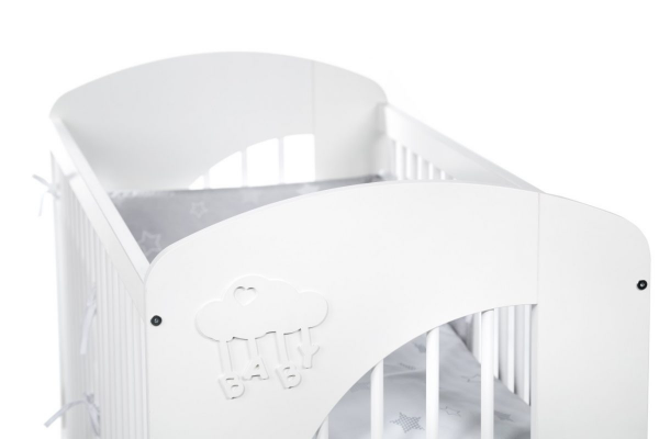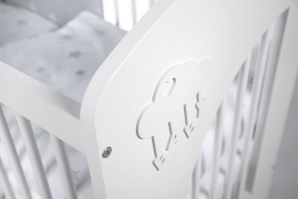Izrađen od lamelirane ploče sa elementima borovog drveta. Ima trostepeno podešavanje dna. Za montažu su korišćeni šrafovi sa ravnim krajevima, zahvaljujući kojima se krevetac pri uvrtanju ne oštećuje i može se više puta sklapati i rastavljati. Ovo je odlično rešenje, zahvaljujući kome krevetac može da koristi više od jednog deteta. Prečke kreveta su okrugle, raspoređene u razmaku od 9 cm, koje se mogu ukloniti. Vrhovi krevetića su puni, što povećava njegovu stabilnost. Dno krevetića je napravljeno od letvica koje obezbeđuju protok vazduha. Zahvaljujući tome, možete biti sigurni da dušek, a time i vaša beba, ima odgovarajuću ventilaciju. Lakirani krevetac je bezbedan za dete i ima sva potrebna odobrenja.