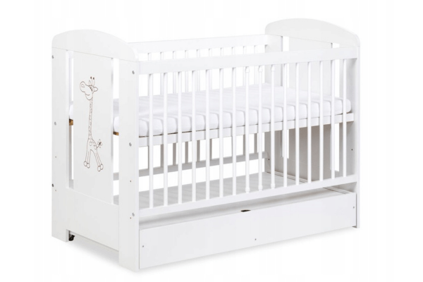 Izrađen od lamelirane ploče sa elementima borovog drveta. Ima trostepeno podešavanje dna. Za montažu su korišćeni šrafovi sa ravnim krajevima, zahvaljujući kojima se krevetac pri uvrtanju ne oštećuje i može se više puta sklapati i rastavljati. Ovo je odlično rešenje, zahvaljujući kome krevetac može da koristi više od jednog deteta. Prečke kreveta su okrugle, raspoređene u razmaku od 9 cm, koje se mogu ukloniti. Vrhovi krevetića su puni, što povećava njegovu stabilnost. Dno krevetića je napravljeno od letvica koje obezbeđuju protok vazduha. Zahvaljujući tome, možete biti sigurni da dušek, a time i vaša beba, ima odgovarajuću ventilaciju. Lakirani krevetac je bezbedan za dete i ima sva potrebna odobrenja.