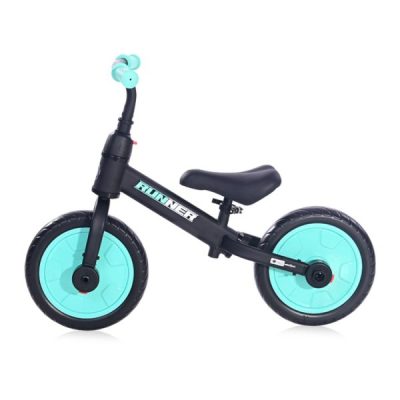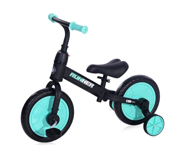 - Lorelli 2-u-1 Runner se može koristiti kao bicikl za ravnotežu i kao bicikl sa pedalama i pomoćnim točkovima.