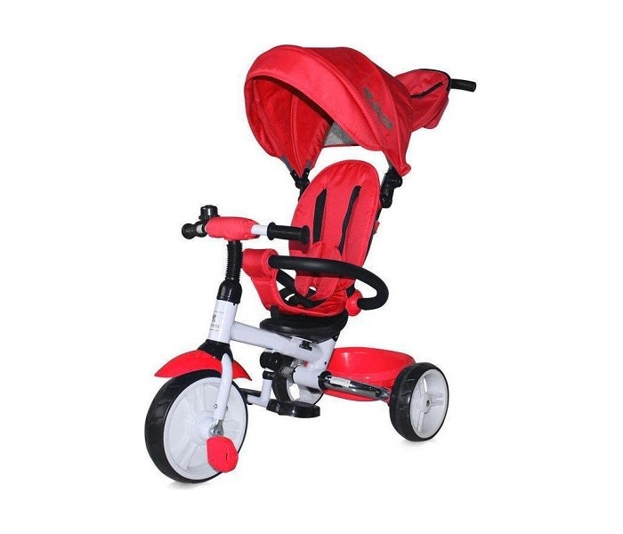 Ovaj dečiji tricikl poseduje torbicu za igračkice, veliku sklopivu tendu sa malim prozorčićem, malu torbicu na ručki za upravljanje za odlaganje sitnica, udobno sedište čiji se naslon pomera za manju decu i zvonce
