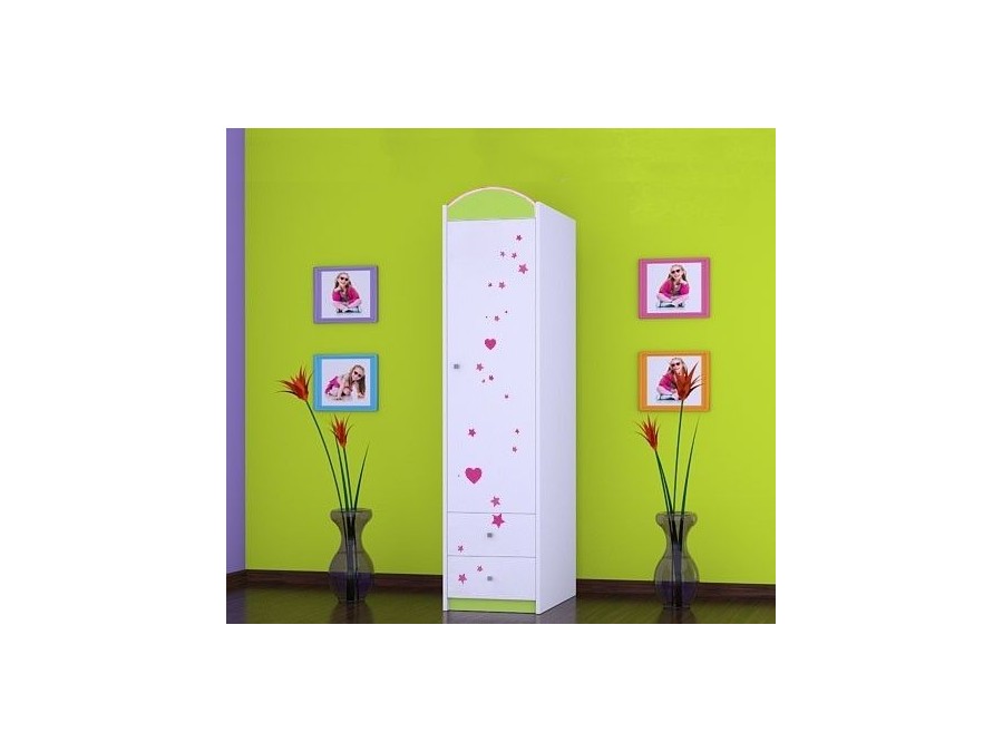 Prednje strane ormana obložene su živopisnim nalepnicama koje su izrađene od ekoloških boja,