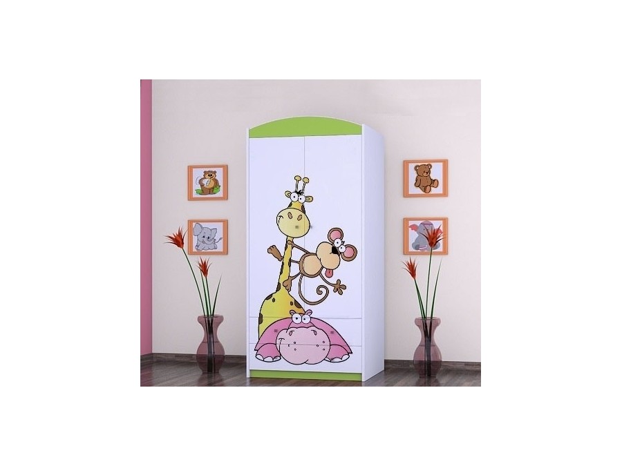 Prednje strane ormana obložene su živopisnim nalepnicama koje su izrađene od ekoloških boja,