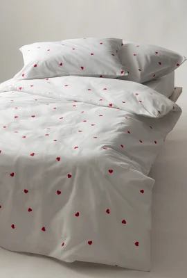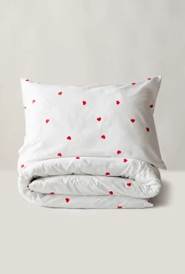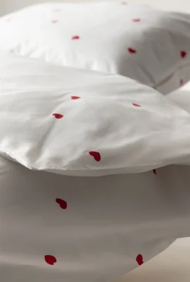 Kombinacija bele boje i crvenih srca na navlaci donosi notu ljubavi i radosti u vašu spavaću sobu.