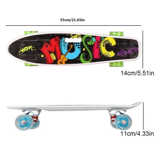- Skejt napravljen od plastike visokog kvaliteta i metala sa silikonskim točkovima koji svetle kada se okreću.