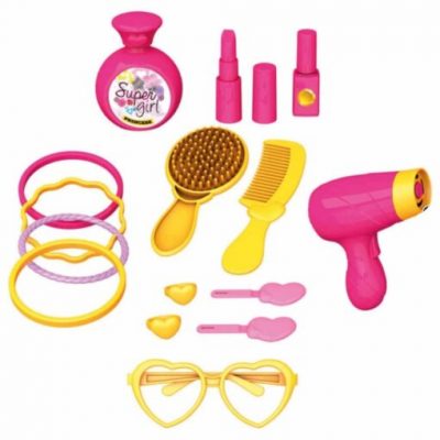 - pribor za ulepšavanje (fen, češalj, šnalice, ogledalce sa senkama za tašnu, četka, male bočice za parfeme i karmini)